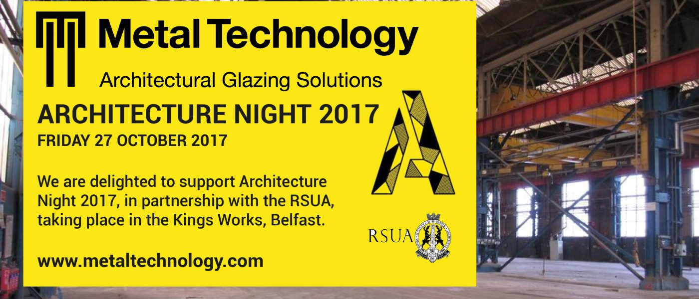 Friday 27 October 2017 is Architecture Night, a superlative social and cultural evening focusing on the power of architecture to bring about positive change. Organised by RSUA, and proudly sponsored and supported by Metal Technology, the event takes place in the Kings Works in the heart of Belfast’s Titanic Quarter, Belfast.