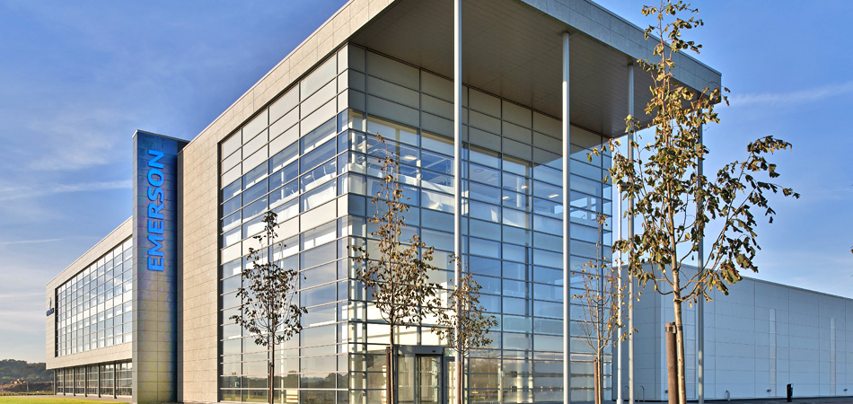 Extensive glazing for the Emerson Building at D2, Aberdeen has been facilitated with a suite of systems from Metal Technology, including curtain walling, windows and doors. The facility will support a range of services and solutions from both Emerson Process Management and Emerson Network Power, including a support service for customers with North Sea installations.