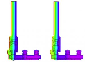 The following table, based on a triple track door (3000mm x 2180mm) and warm edge spacers, demonstrates how such improved U-frame values then contribute to improving the overall thermal performance of a complete door.