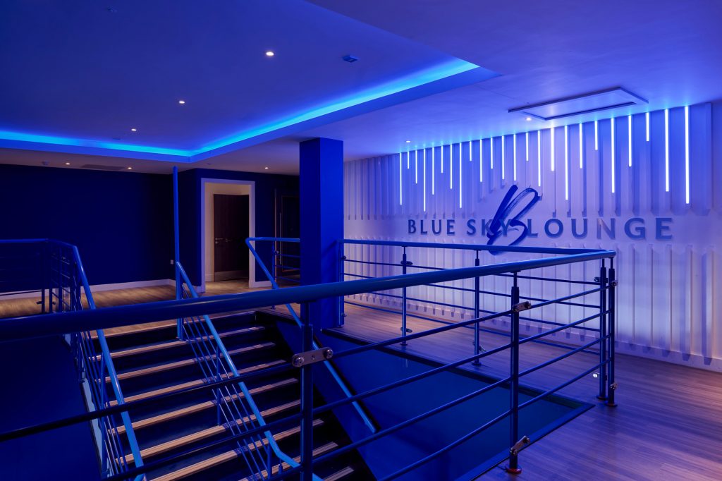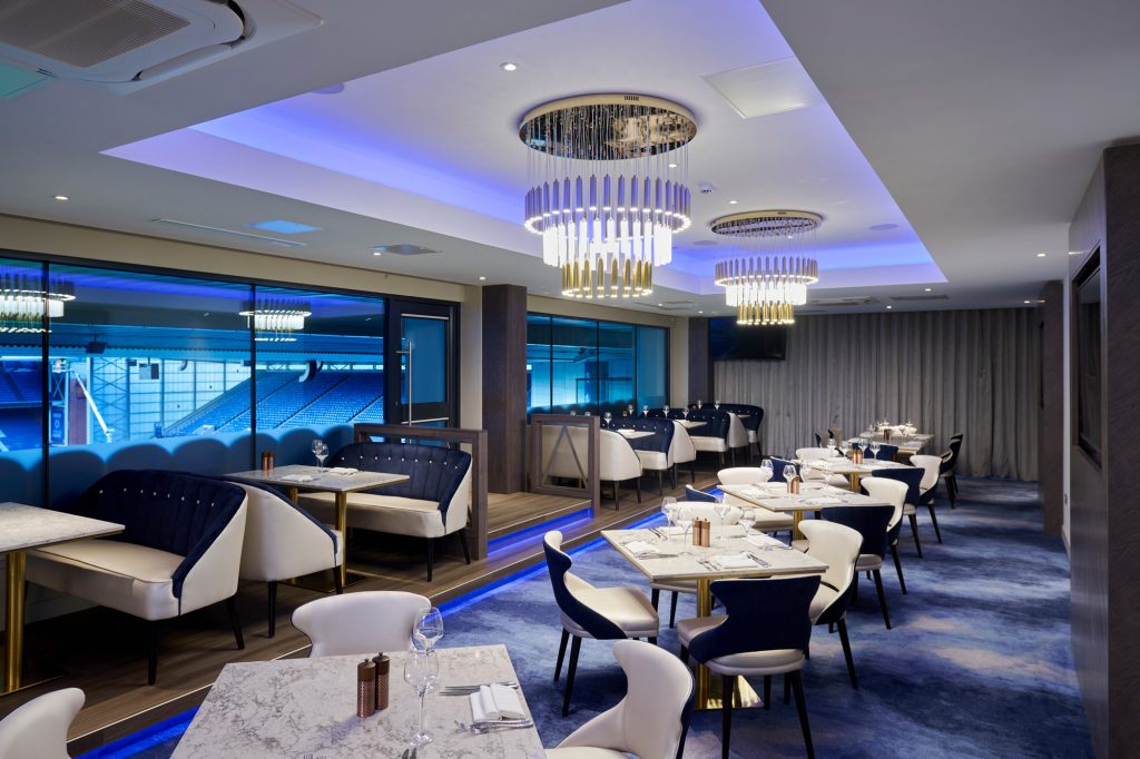 The new luxury, multi-purpose Blue Sky Lounge at Rangers’ Ibrox Stadium in Glasgow sets a new standard for sports hospitality in Scotland, with impressive panoramic views of the pitch and capacity for more than 330 guests.