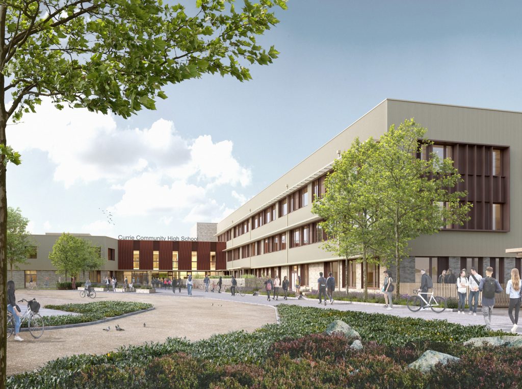 We are delighted to be involved in another Passive House education project in Scotland – the new £65m Currie Community High School in Edinburgh, which will provide 1,000 student places with three floors of teaching blocks. The building will offer beautiful, light filled and healthy learning places and become a vibrant community hub, with outstanding health and fitness facilities, a Passivhaus swimming pool, a café, outdoor informal play spaces, a sensory garden, and public allotments.